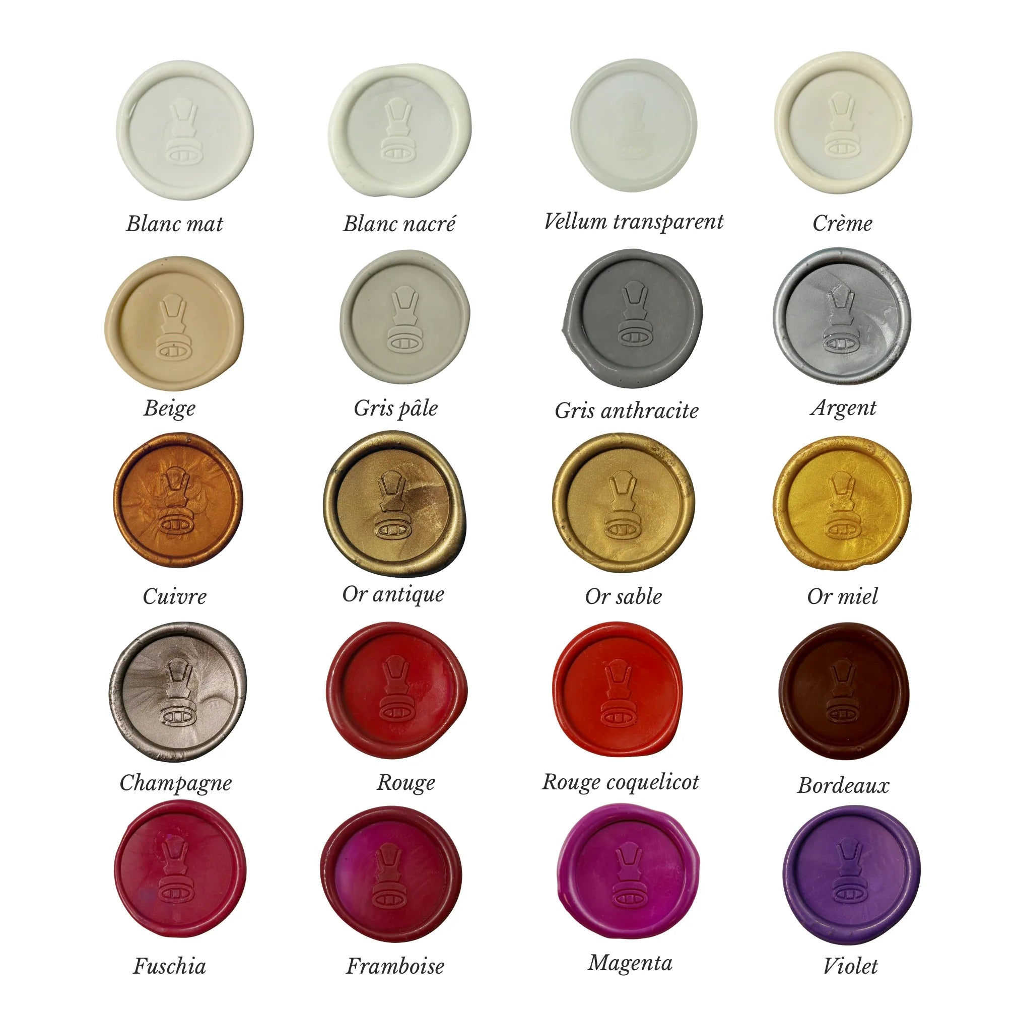 La taille indiquée correspond à la taille de l'empreinte. Le cachet de cire fini sera environ 5mm plus grand que l'empreinte.